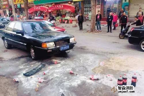 轎車自燃,圍觀群眾用可樂滅火