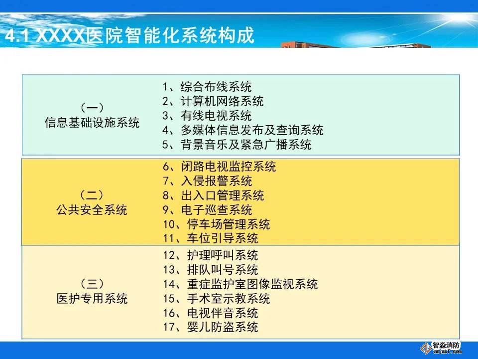 醫(yī)院智能化建設(shè)一年一個發(fā)展變化,沒有最新的系統(tǒng),因為醫(yī)院項目一些系統(tǒng)也會改造升級,但是了解一些醫(yī)院的智能化設(shè)計還是需要的,尤其初步設(shè)計方案,我們可以參考一下,修改成自己,然后到甲方哪里匯報,然后修改,然后形成最終的,最后再做詳細(xì)的設(shè)計方案。