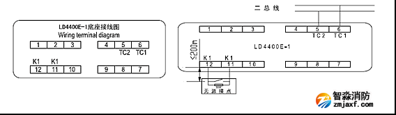 1.利達(dá)LD10EN底座:用于LD3000EN/A、LD3300EN等探測器,采用二總線并聯(lián)接線方式,TC+,TC-端子不分正負(fù)極。