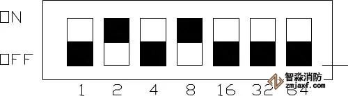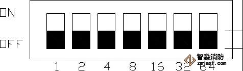 利達(dá)的電話分機(jī)撥碼開關(guān)預(yù)置7位編碼,從左到右每個(gè)地址對應(yīng)的十進(jìn)制數(shù)分別為1、2、4、8、16、32和64。因此可表達(dá)的地址范圍為0-127。但是要注意分機(jī)有效編碼范圍1-99(0及大于99的地址為無效地址)。| 如圖 |
