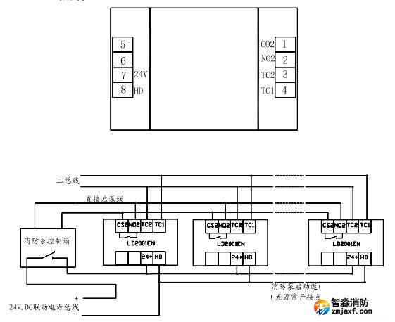 利達(dá)消火栓報(bào)警按鈕LD2001EN端子圖與接線圖示例