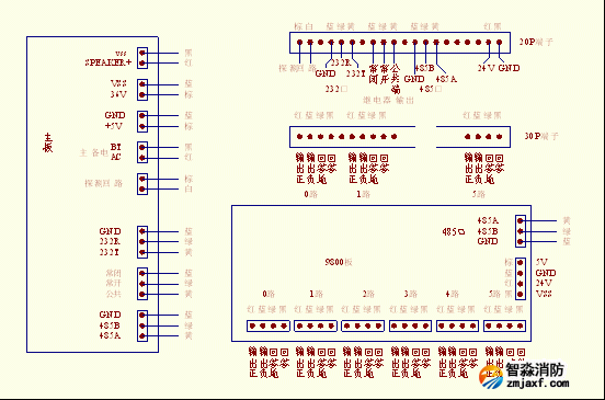 4. 9800聯(lián)動(dòng)控制盤(pán)不能直接驅(qū)動(dòng)現(xiàn)場(chǎng)設(shè)備,所以需在現(xiàn)場(chǎng)配接現(xiàn)場(chǎng)轉(zhuǎn)接模塊或繼電器,以實(shí)現(xiàn)大功率現(xiàn)場(chǎng)電源的提供和交直流電源轉(zhuǎn)換的功能。