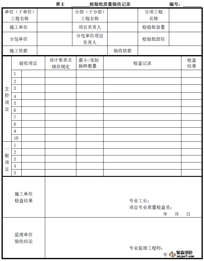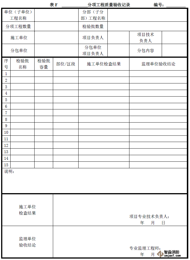 分項(xiàng)工程質(zhì)量驗(yàn)收記錄可按《建筑工程施工質(zhì)量驗(yàn)收統(tǒng)一標(biāo)準(zhǔn)》附錄F填寫(xiě)。
