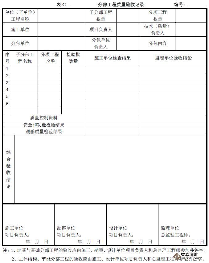 分部工程質(zhì)量驗(yàn)收記錄可按《建筑工程施工質(zhì)量驗(yàn)收統(tǒng)一標(biāo)準(zhǔn)》附錄G填寫(xiě)。