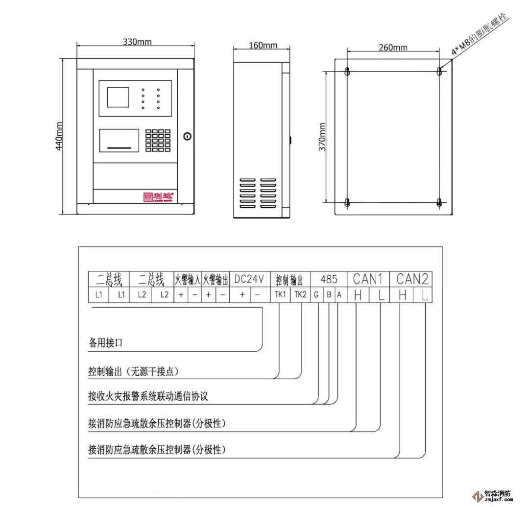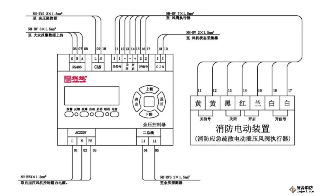 消防應(yīng)急疏散余壓控制器接線示意圖